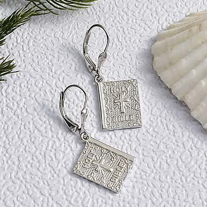 D'Joy Holy Bible Earring with Lever Back in Rhodium Overlay and Gold Plated Sterling Silver