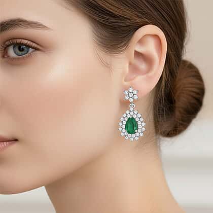D'Joy Emerald & Moissanite Earring in Rhodium Overlay Sterling Silver 2.33 Ct.