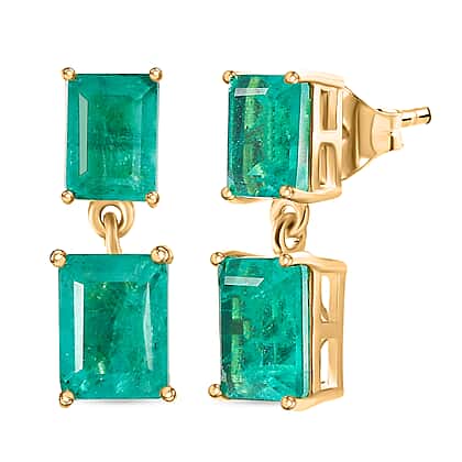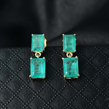 D'Joy Emeraldine Triplet Quartz Solitaire Stud Push Post Earring Sterling Silver 5.022 Ct.