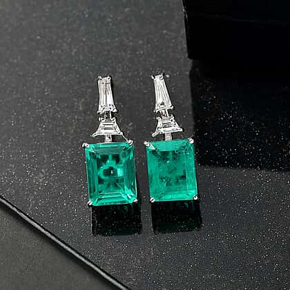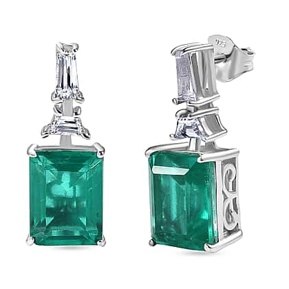 Light up every moment with this radiant stud earring, featuring emeraldine triplet quartz at the centre in a rich green hue. This earring celebrates the classic beauty of white topaz stones, catching light from every angle and with every movement. Meticulously crafted in hypoallergenic 925 sterling silver, this earring ensures durability and offers comfort to sensitive skin. The platinum overlay on sterling silver provides a lustrous shine and a lavish finish. Add this beauty to your collection for refined glamour that is suitable for every occasion and special gifting.