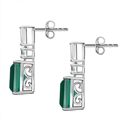 D'Joy Emeraldine Triplet Quartz & White Topaz Stud Push Post Earring in Platinum Overlay Sterling Silver 5.86 Ct.