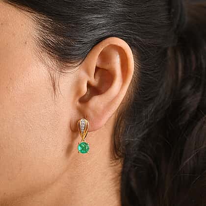 D'Joy Emeraldine Triplet Quartz & White Zircon Dangling Earring with Clasp in Yellow Gold Plated Sterling Silver 2.90 Ct.