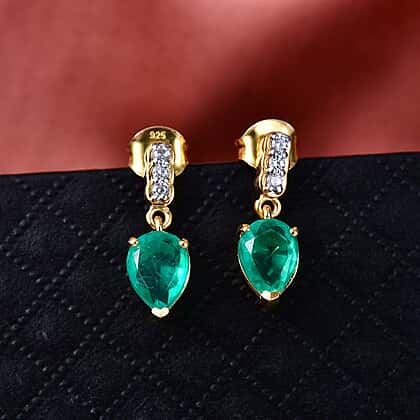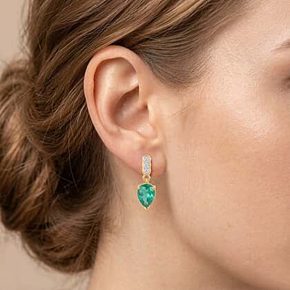D'Joy Emeraldine Triplet Quartz & White Zircon Dangling Earring with Push Post in Yellow Gold Plated Sterling Silver 2.85 Ct.