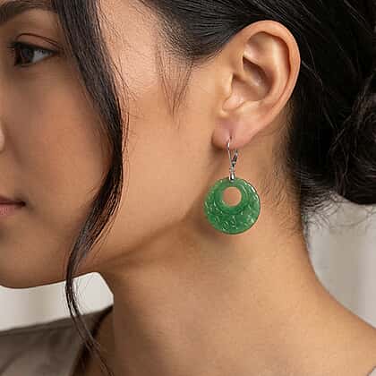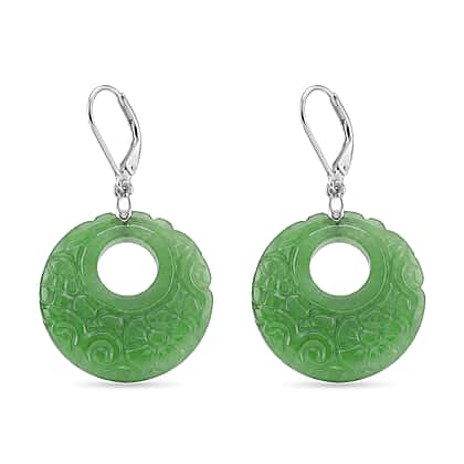 D'Joy Enhanced Green Jade Beads Earring with Lever Back in Rhodium Overlay Sterling Silver 50.00 Ct.