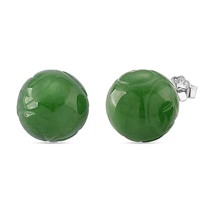 D'Joy Enhanced Green Jade Beads Earring with Push Back in Rhodium Overlay Sterling Silver 30.00 Ct.