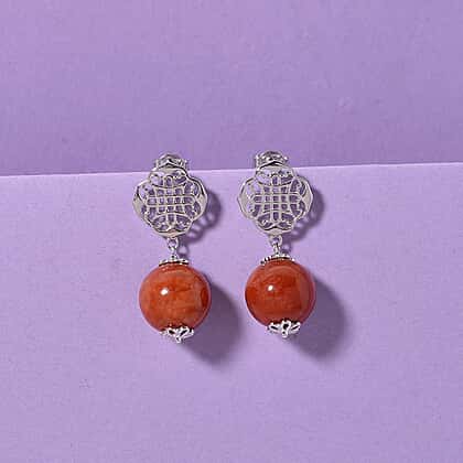 D'Joy Enhanced Red Jade Ball Drop Earring with Push Back in Rhodium Overlay Sterling Silver 29.00 Ct.