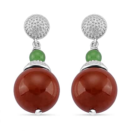 D'Joy Enhanced Red Jade & Dyed Green Jade Earring with Push Back in Rhodium Overlay Sterling Silver 32.24 Ct.