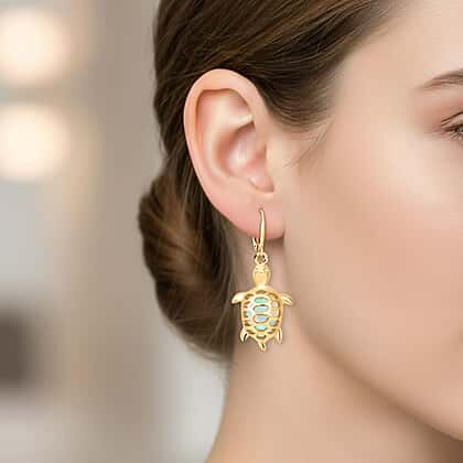 D'Joy Ethiopian Opal Turtle Earring with Lever Back in Yellow Gold Plated Sterling Silver 1.38 Ct.