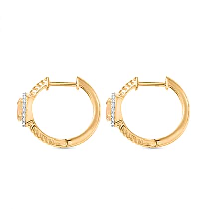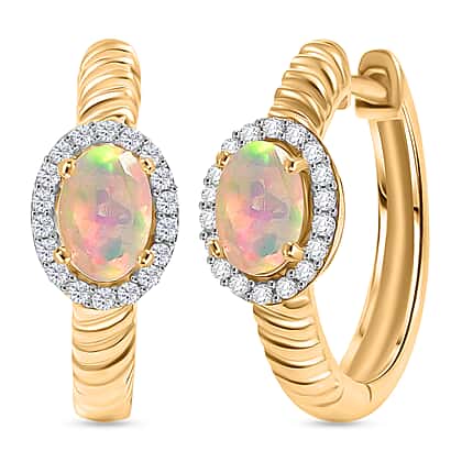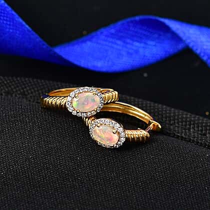 D'Joy Faceted Ethiopian Opal & White Zircon Earring with Hoop in Yellow Gold Plated Sterling Silver 1.00 Ct.