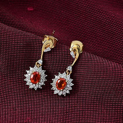 D'joy Fire Opal, White Zircon Double Halo Earring with Push Back in 18K Vermeil Yellow Gold Overlay Sterling Silver 1.22 Ct.