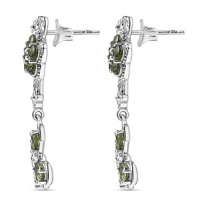 D'Joy Green Apatite & White Zircon Dangling Earring in Platinum Overlay Sterling Silver 2.97 Ct, Silver Wt. 5.13 Gms.