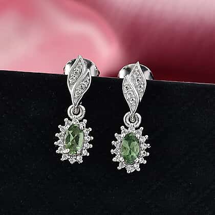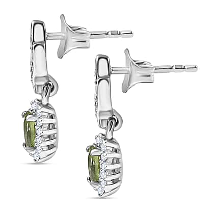 D'Joy Green Apatite, White Zircon Solitaire Stud Push Post Earring in Rhodium OverlaySterling Silver 0.872 Ct.