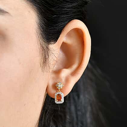 D'Joy Hessonite Garnet, White Zircon Solitaire Stud Push Post Earring in 18K YG PlatingSterling Silver 1.694 Ct.