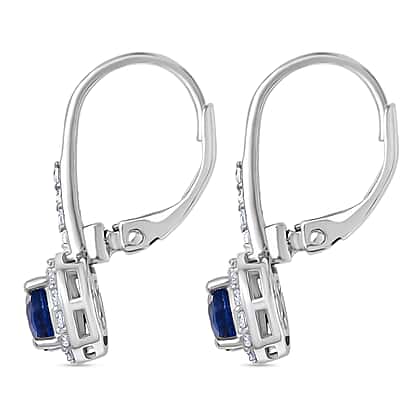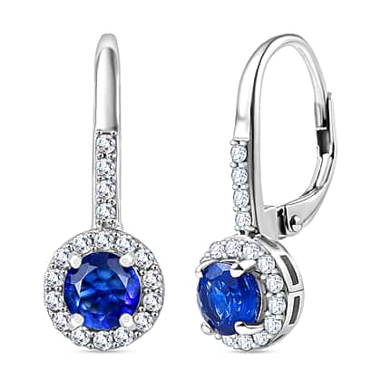 D'Joy Kashmir Kyanite & White Zircon Solitaire Lever Back Earring in Platinum Overlay Sterling Silver 1.79 Ct.