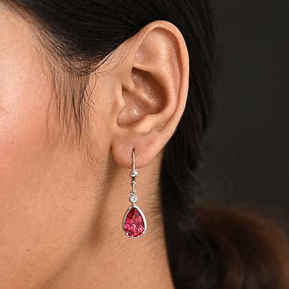 D'Joy Lab Grown Padparadscha Sapphire & Lab Grown Diamond Dangling Earring Sterling Silver 7.42 Ct.