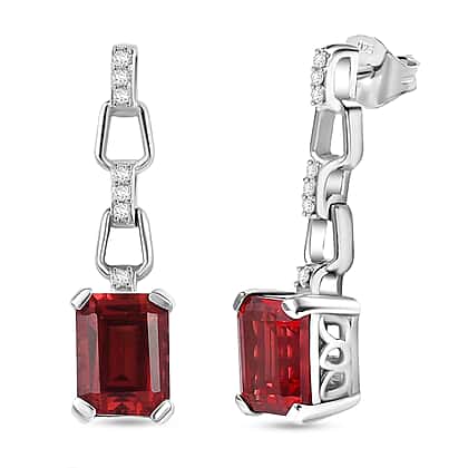 Presenting a fusion of beauty and artistry, this stunning dangling earring brings radiance to every outfit. The piece features lab-grown padparadscha sapphire in an orange-pink hue, complemented by dazzling white zircons, adding extra beauty and brilliance to the piece. The geometric drop design adds a classic twist and a modern look. Meticulously crafted in hypoallergenic 925 sterling silver, this piece ensures durability and enduring shine. The platinum overlay on sterling silver offers a lavish finish and lustrous shine. The earring is perfect for special gifting and personal styling on special occasions.