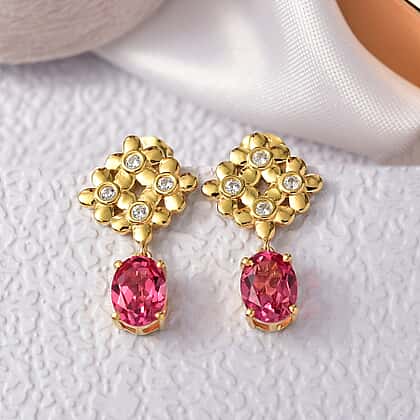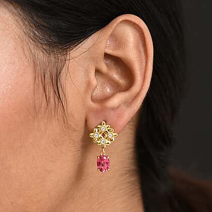 D'Joy Lab Grown Padparadscha Sapphire & White Zircon Earring in 18K Yellow Gold Plating Sterling Silver 5.72 Ct.