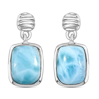 D'joy Larimar Solitaire Stud Push Post Rippling Waters Earring in Rhodium Overlay Sterling Silver 3.24 Ct.