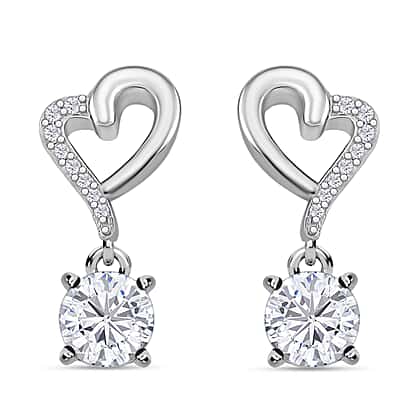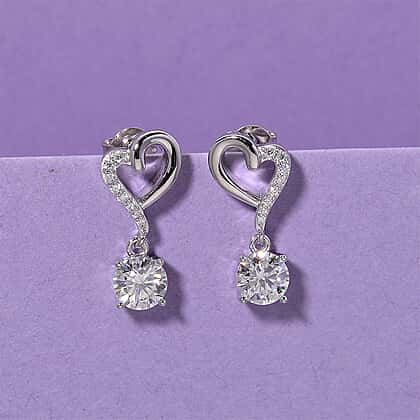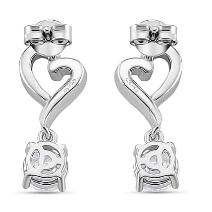 D'Joy Moissanite Dangling Earring with Push Back in Rhodium Overlay Sterling Silver 1.77 Ct.