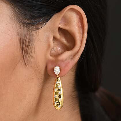 D'Joy Moissanite Drop Earring in Yellow Gold Plated Sterling Silver 1.61 Ct.