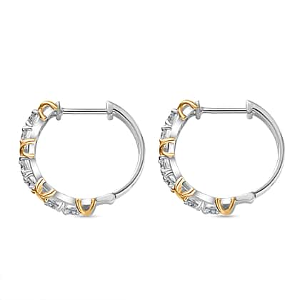 - Moissanite stones set in a dual-tone hoop design