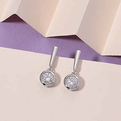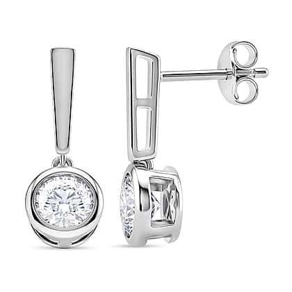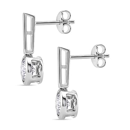 D'Joy Moissanite GRA Certified Solitaire Earring with Push Back in Rhodium Overlay Sterling Silver 1.52 Ct.
