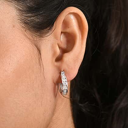 D'Joy Moissanite Hoop Earring with Clasp in Platinum Overlay Sterling Silver 1.29 Ct.