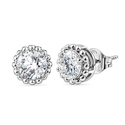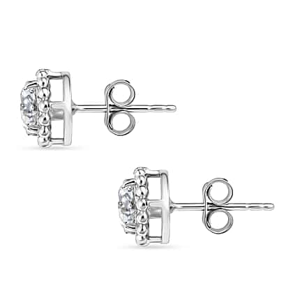 D'Joy Moissanite Solitaire Stud Push Post Earring in Platinum Overlay Sterling Silver 1.53 Ct.