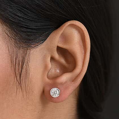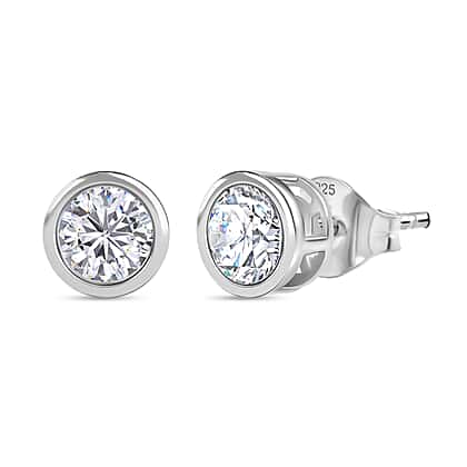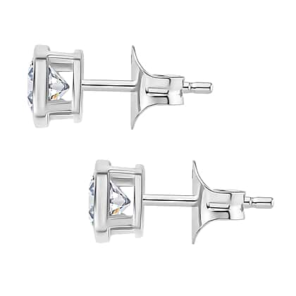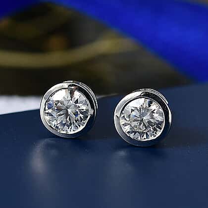 D'Joy Moissanite Solitaire Stud Push Post Earring in Rhodium OverlaySterling Silver 1.19 Ct.