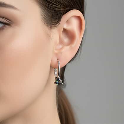 D'Joy Mystic Topaz Solitaire Lever Back Earring in Platinum Overlay Sterling Silver 1.08 Ct.