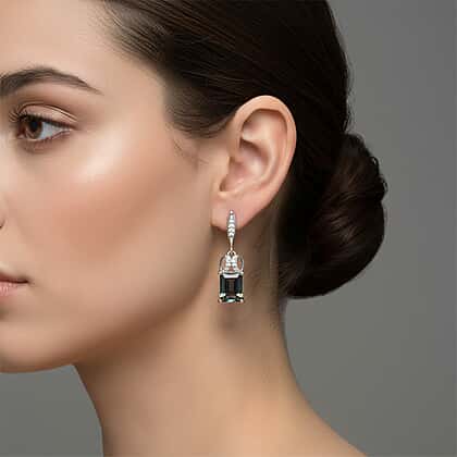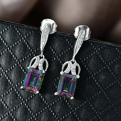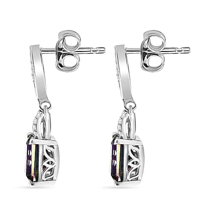 D'Joy Mystic Topaz, White Zircon Dangling Earring with Push Back in Rhodium Overlay Sterling Silver 4.06 Ct.