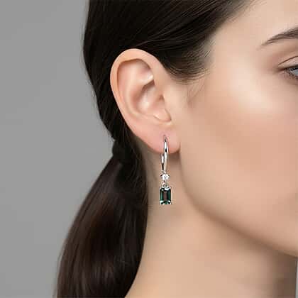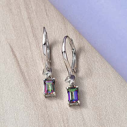 D'Joy Mystic Topaz & White Zircon Solitaire Lever Back Earring in Platinum Overlay Sterling Silver 1.50 Ct.