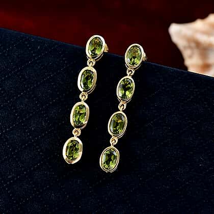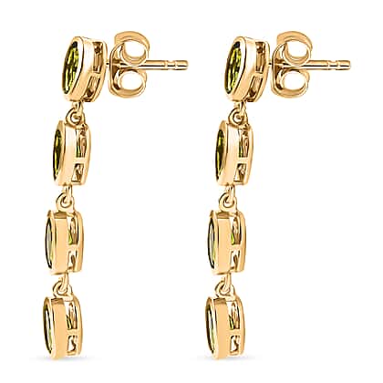 D'joy Natural Hebei Peridot Branchlet Dangles Earring with Push Back in Yellow Gold Plating Sterling Silver 3.87 Ct.