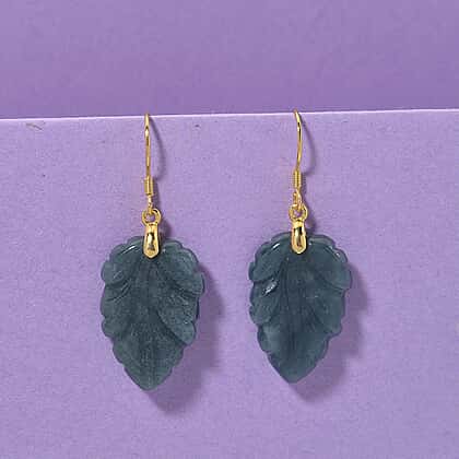 D'Joy Natural Jadeite Jade Beads Earring with Hook in Yellow Gold Plated Sterling Silver 25.00 Ct.