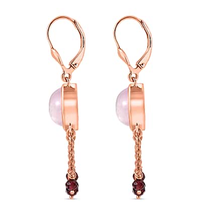 D'Joy Natural Kunzite & Red Garnet Earring with Lever Back in Rose Gold Plated Sterling Silver 15.73 Ct.