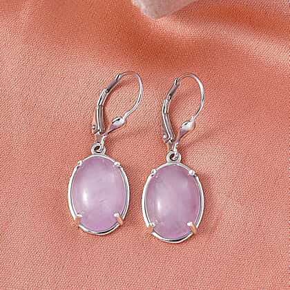 D'Joy Natural Kunzite Solitaire Lever Back Earring in Platinum Overlay Sterling Silver 13.02 Ct.