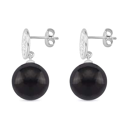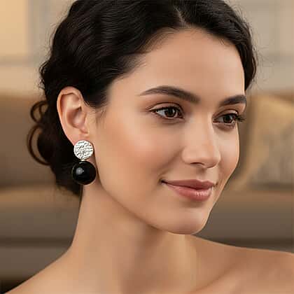 Nothing rivals the charm of pearl-style earrings when it comes to marking life's special moments. These drop earrings feature a silver-toned, engraved pattern in a round shape silhouette that beautifully contrasts with a black Shungite bead at the bottom. The combination of texture and the sleek, glossy feel of the stone looks artistically charming. Crafted in rhodium overlay sterling silver, these earrings are perfect to add a dose of modern glamour to any ensemble. Elevated and edgy, these drop earrings are perfect to carry you through every season.