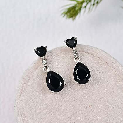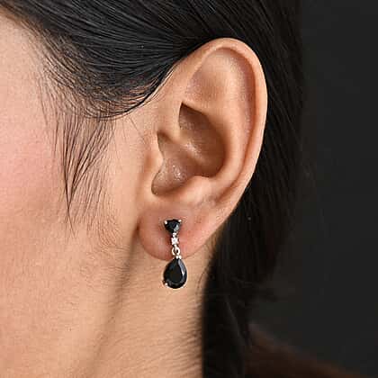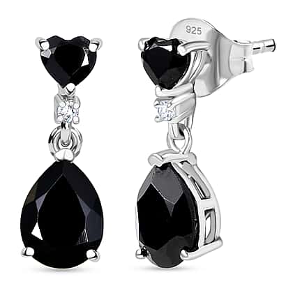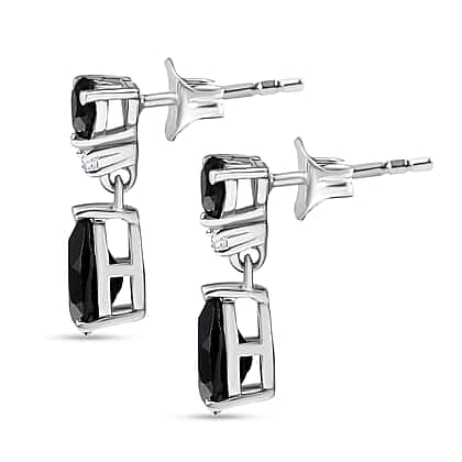 D'Joy Natural Thai Black Spinel & White Zircon Dangling Earring in Platinum Overlay Sterling Silver 4.84 Ct.