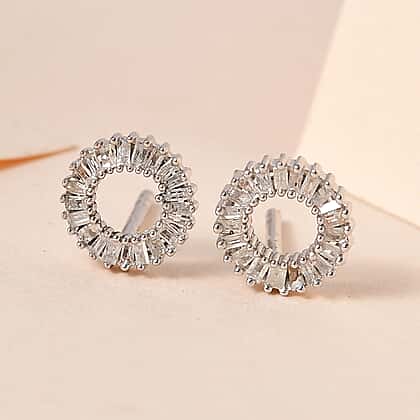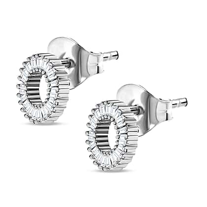 D'Joy Natural White Diamond Circle Stud Push Back Earrings in Platinum Overlay Sterling Silver 0.19 Ct.