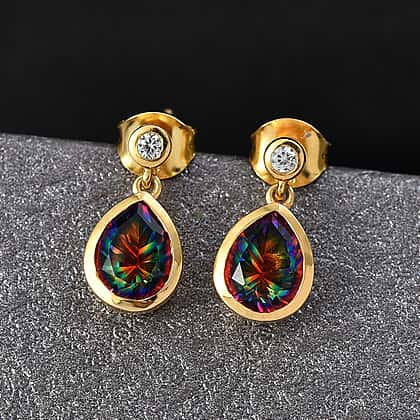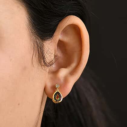 D'Joy Nebula Quartz Doublet & White Zircon Dangling Earring in 18K Yellow Gold Plated Sterling Silver 2.95 Ct.