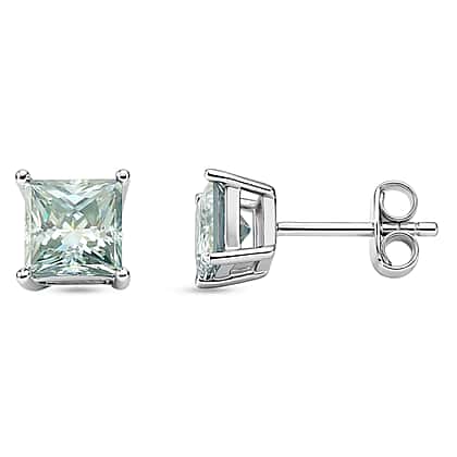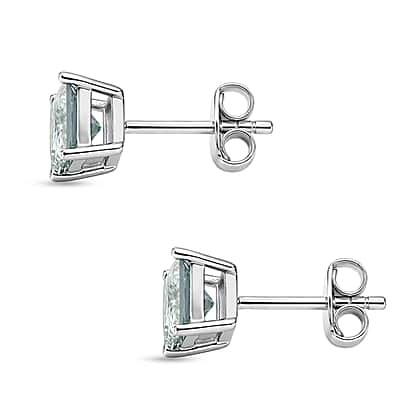 D'Joy Paraiba Moissanite Solitaire Stud Earring with Push Back in Rhodium Overlay Sterling Silver 1.82 Ct.