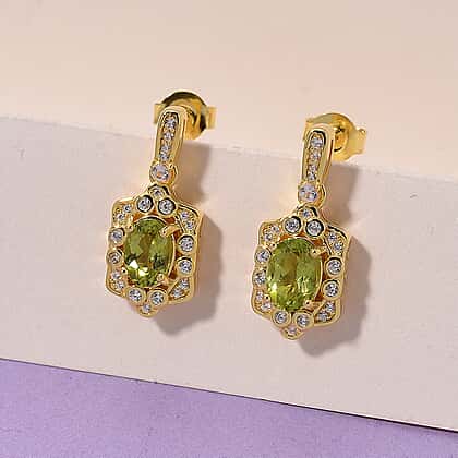 D'Joy Peridot, White Zircon Main Stone With Side Stone Earring Sterling Silver 2.640 Ct.