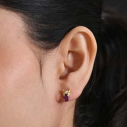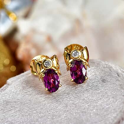 D'Joy Radiant Ember Garnet, Lab Grown Diamond Solitaire Stud Push Post Earring in 18K YG PlatingSterling Silver 1.222 Ct.