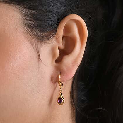 D'Joy Radiant Ember Garnet Solitaire Stud Push Post Earring in 18K YG PlatingSterling Silver 0.968 Ct.