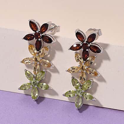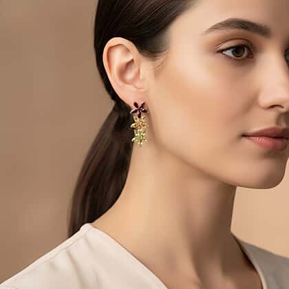 D'Joy Red Garnet Dangling Earring with Push Back in Rhodium Overlay Sterling Silver 4.92 C, Silver Wt. 5.30 Gms.