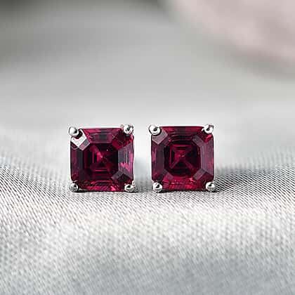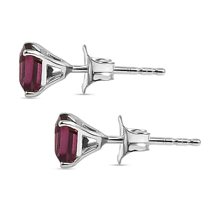 D'Joy Rhodolite Garnet Solitaire Earring with Push Back in Platinum Overlay Sterling Silver 1.69 Ct.