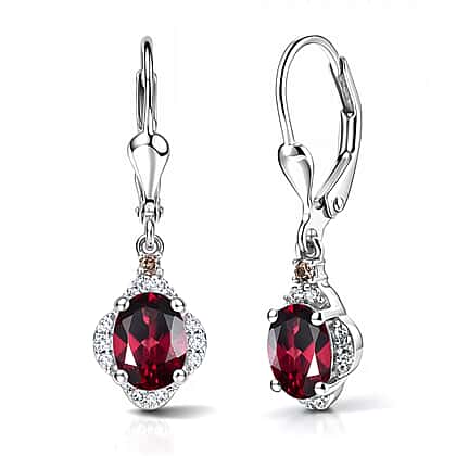 D'Joy Rhodolite Garnet, White Zircon, Chocolate Zircon Solitaire Lever Back Earring in Platinum OverlaySterling Silver 2.388 Ct.