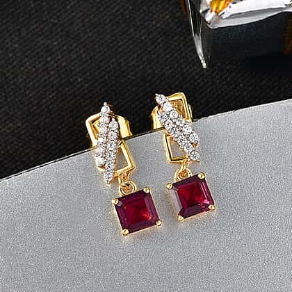 D'Joy Rhodolite Garnet, White Zircon Dangling Earring in 18K YG PlatingSterling Silver 1.848 Ct.