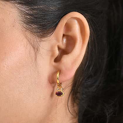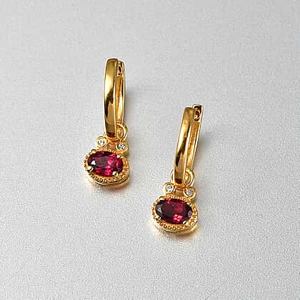 D'Joy Rhodolite Garnet, White Zircon Full Hoop Earring in 18K YG PlatingSterling Silver 1.220 Ct.
