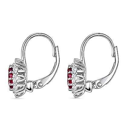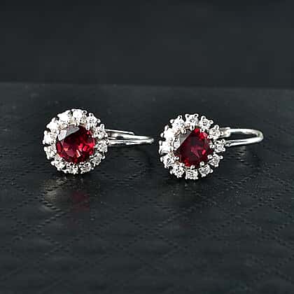 D'Joy Rhodolite Garnet, White Zircon Main Stone With Surrounding Stone Earring in Platinum OverlaySterling Silver 2.956 Ct.